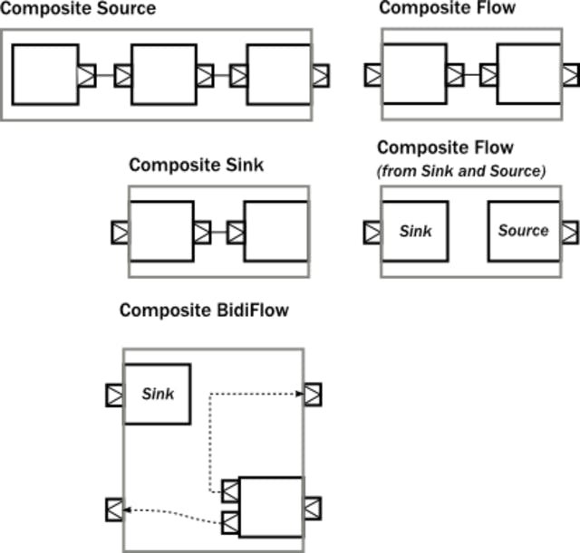 - Various Flows (like Flow.filter, Flow.fold. Flow.throttle, Flow.mapAsync, Flow.delay, Flow.merge, Flow.broadcast, etc.), many of them are available via simple DSL (like .map, .filter, etc.)
